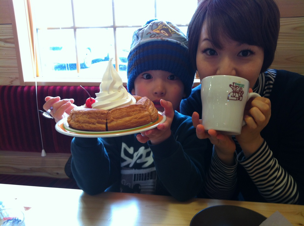 急いで食べないと、ソフトクリームが溶けます・・・泣